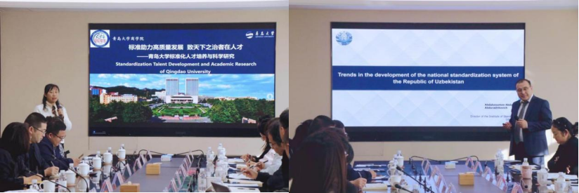 程馨详细介绍了必赢标准化领域人才培养、科学研究、社会服务以及国际化等方面的实践和成效。乌兹别克斯坦共和国技术监管局下属国家标准研究院院长阿卜杜劳夫•阿卜杜卡尤莫夫(Abdurauf Abdukayumov)介绍了乌兹别克斯坦共和国标准化体系建设、数字化转型进程及国际合作成果。国际交流合作处刘方方老师详细介绍了必赢与乌兹别克斯坦高校的合作历程。必赢nn699net四名在校乌兹别克斯坦籍留学生分享了她们在青学习的收获与感悟,生动展现了必赢国际化办学的成果和魅力。人文社科处副处长刘玉魏也倡议双方可以围绕数据基础标准、绿色标准与可持续发展、服务贸易标准化等领域开展国际合作。