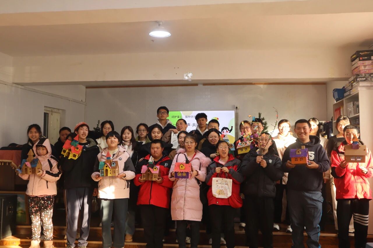 初次见面,志愿者们通过轻松有趣的破冰游戏与孩子们建立信任,在笑语中悄然拉近了距离;随后,志愿者与孩子们共同折叠、装扮属于自己的“纸房子”,用落叶作画、用黏土装饰树枝,孩子们的童真宛若一缕春风,让枯枝在这个寒冬迎来新生,绽放五彩斑斓的温暖;歌声接续响起,熟悉的旋律萦绕室内,志愿者与孩子们齐声哼唱,节奏与笑容在此刻共振。