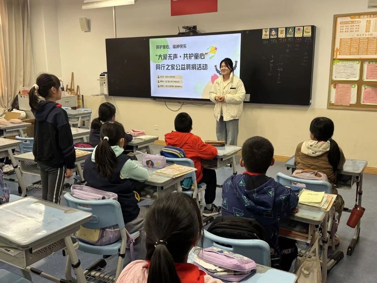 12月4日下午,志愿者们走进“同行之家”,将募集到的爱心物资捐赠给学校,同时向每一位小朋友传达了来自大学生、小学生和老师们的温暖和爱意。