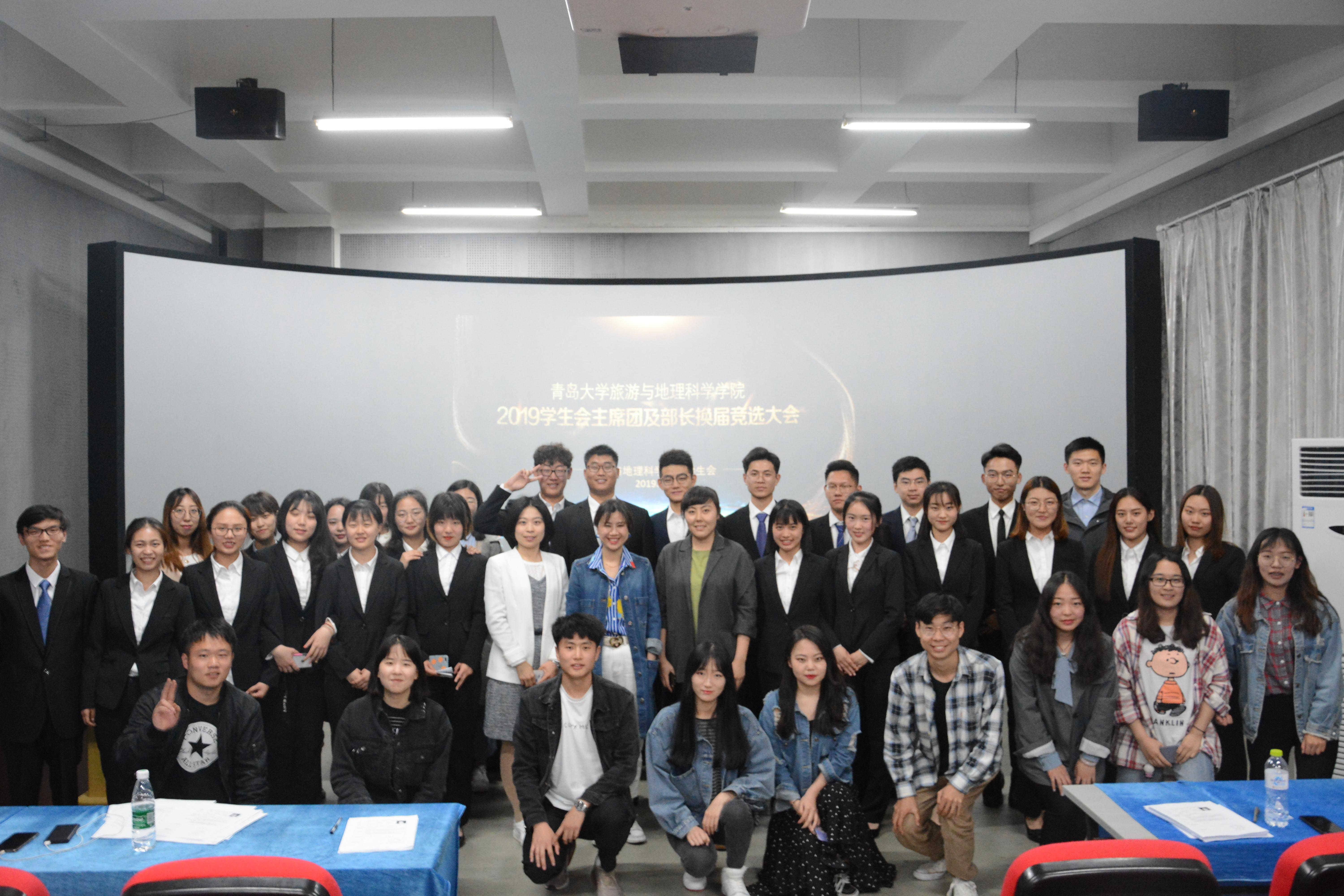 5月6日,必赢旅游与地理科学学院2019学生会主席团及部长换届竞选于必赢浮山校区数字旅游实验室举行,学院党委副书记于苗及辅导员老师出席本次竞选活动。